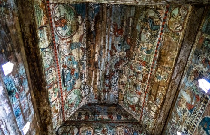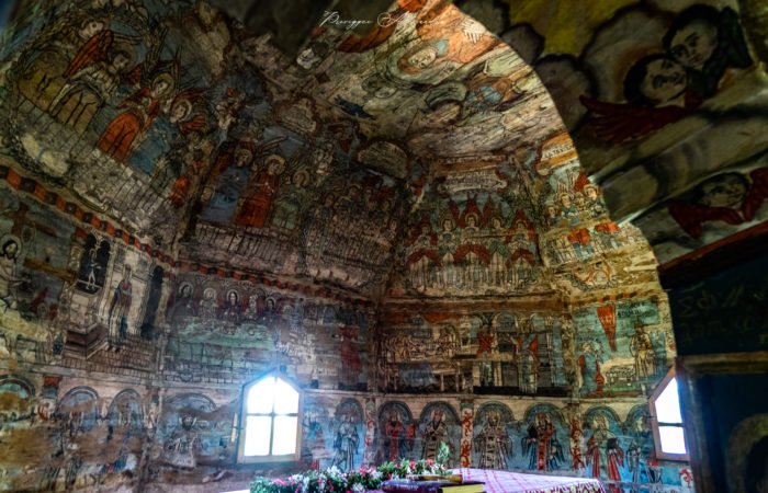 La fel ca la porțile și la casele maramureșene, și la biserici întâlnim aceleași ornamente și simboluri sculptate în lemn. Nici de la Bârsana nu lipsește funia răsucită sau semnul soarelui, simboluri despre care v-am povestit aici. Fascinantă, la toate lăcașurile de cult, este pictura. Desenele au fost realizate direct pe lemn, cu secole în urmă. Au rezistat până astăzi și încă scriu istorie.