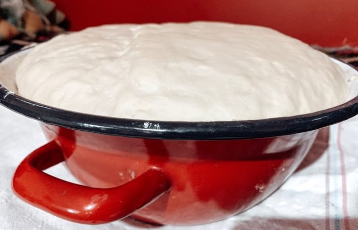 După ce aluatul a fost frământat, se acoperă vasul și se lasă la dospit aproximativ o oră și jumătate.