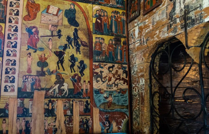 Un lucru des întâlnit pe pereții bisericilor de lemn din Maramureș sunt temele Vechiului Testament și ale Judecății de Apoi.