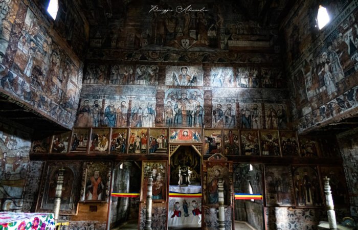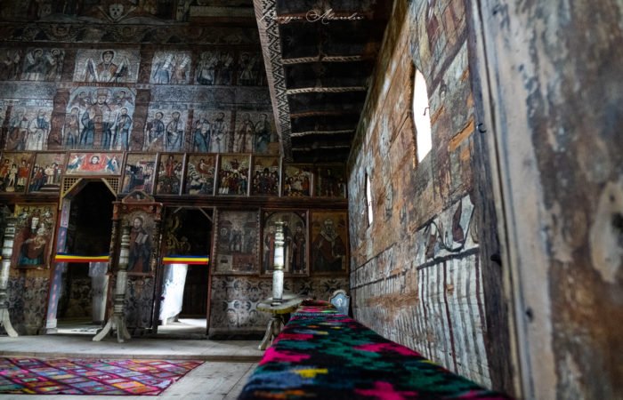 La fel ca la porțile și la casele maramureșene, și la biserici întâlnim aceleași ornamente și simboluri sculptate în lemn. Nici de la Bârsana nu lipsește funia răsucită sau semnul soarelui, simboluri despre care v-am povestit aici. Fascinantă, la toate lăcașurile de cult, este pictura. Desenele au fost realizate direct pe lemn, cu secole în urmă. Au rezistat până astăzi și încă scriu istorie.